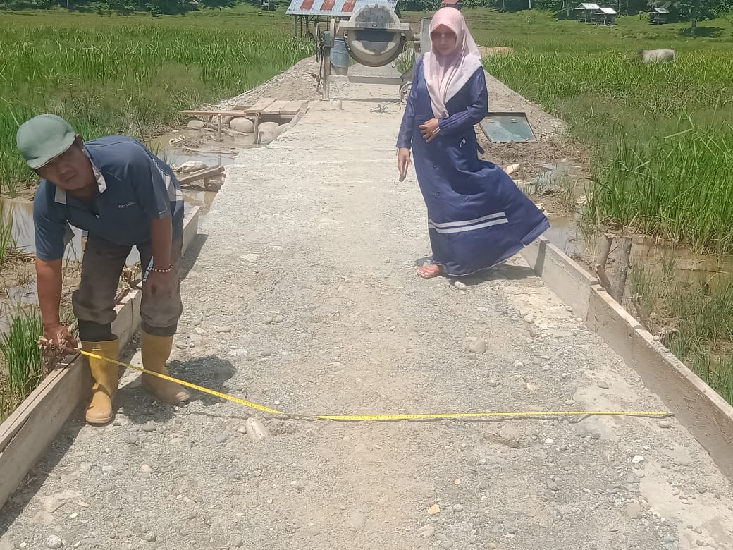 .” Pembangunan jalan rapat beton ini kami Laksanakan sebagai upaya membantu masyarakat dalam kegiatan pengangkutan hasil panen padi di sawah juga mendukung Program Ketahanan Pangan Pemerintah pusat.” Yudi Ersan mengatakan.